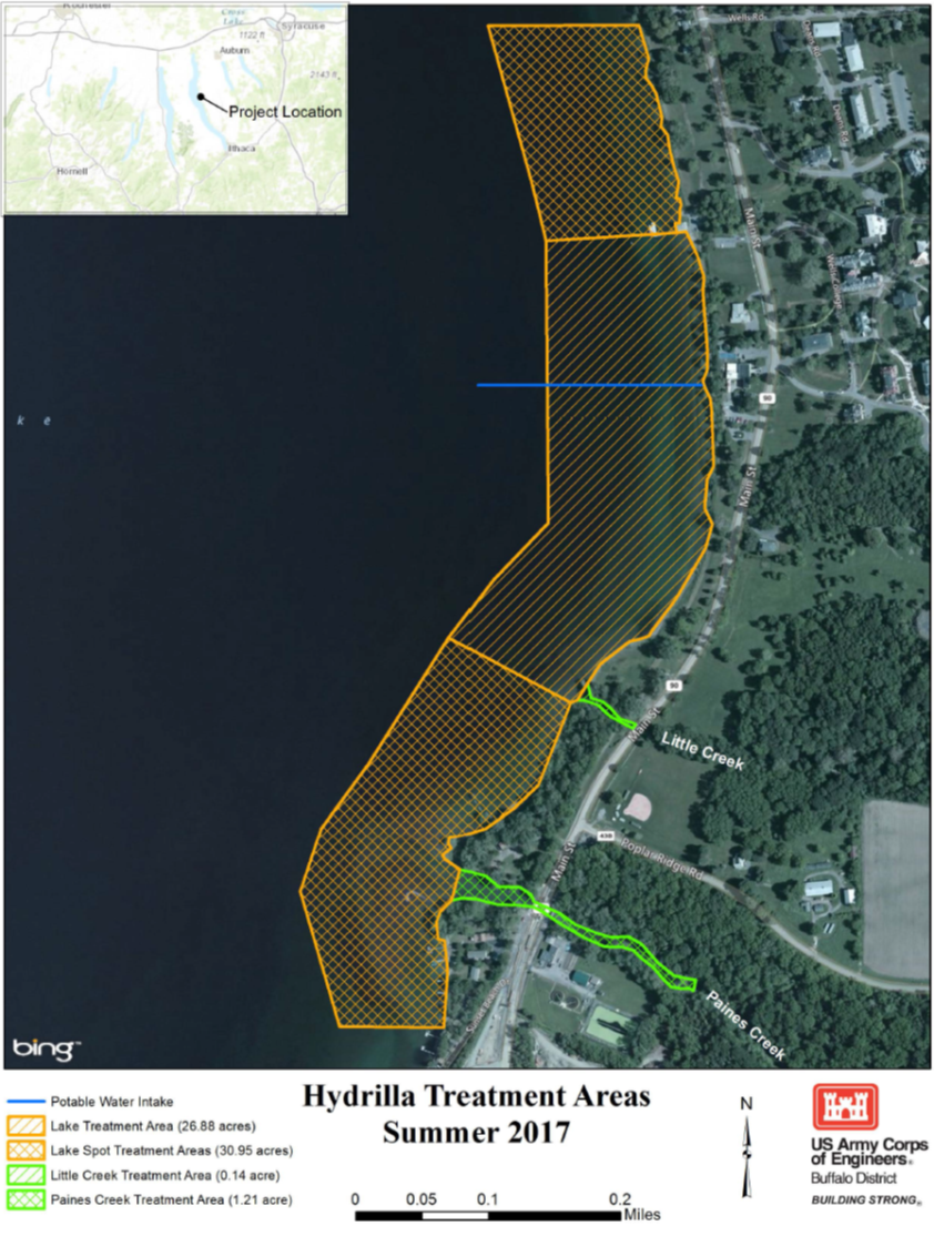 Before the treatment season started The U.S. Army Corps of Engineers issued a press announcement requestong comments on the proposed Cayuga Late at Aurora Hydrilla Control Demonstration Project. A copy of the Finding of No Significant Impact and Environmental Assessment can be found at: